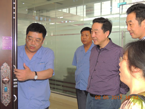 为了进一步了解防盗门和防火门的防盗、防火、保温质量标准和各类防盗、防火门产品的材料、性能等特点以及产品组价,五月八日,市建设工程造价管理站张正金站长一行在市门窗协会张勇会长等陪同下到会员企业扬子集团滁州扬子门业有限公司进行了调研,扬子门业孙跃武董事长、李明辉总经理等热情接待了大家。