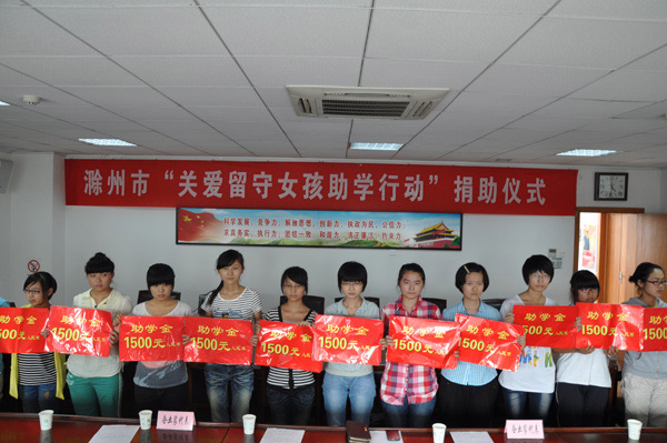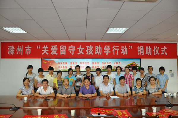 市妇联、市人口计生委、市慈善协会、市门窗协会联合举办“关爱留守女孩助学行动”捐助仪式