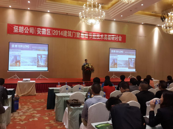 产品革新 寻求技术创新 ----协会组织会员赴合肥参加节能门窗高级研讨会 2014年4月23日,协会受邀组织会员参加了由国内一线品牌‘坚朗五金制品股份有限公司’举办的“建筑门窗节能技术高级研讨会,此次研讨会在合肥风景优美的天鹅湖畔天鹅湖大酒店召开。全国各地保利、万科、恒大等大型房地产开发公司、奥润顺达、宝航等优秀门窗幕墙企业、国内知名泰诺风、保泰等节能材料、配件公司以及门窗幕墙行业协会等100多名代表参加了研讨会。