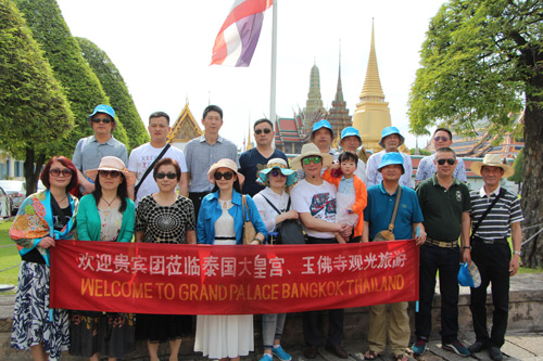 滁州市门窗幕墙协会一行在泰国首都曼谷大皇宫、玉佛寺合影 4月29日至5月4日,市门窗协会由会长孙元祥带队在滁州市青年旅行社领队和泰国导游的带领下进行了为期六天的泰国尊贵之旅。 我们抵达泰国首都曼谷先按照泰国礼节接受了泰国美女献上的迎宾花环。在曼谷我们先后参观游览了泰国国宝“大皇宫”、皇家庙宇“玉佛寺”、皇家御会馆“国会大厦”,这些象征泰国的建筑金碧辉煌、雕梁画栋、美不胜收;在芭提雅我们参观了具有光影折射美感的“天堂艺术馆3D影像城”,乘海上快艇前往“金沙岛”享受了蓝天、碧海、海底行走和海鲜餐,观看“蒂芬妮人妖秀”歌舞领略了泰国文化,还享受了正宗文明“泰式草药按摩”筋骨舒活、全身放松的快感;沿途我们参观了“泰国风情园”,了解了泰国传统民族歌舞表演和泼水节,“丛林骑大象”体验了泰国人古时利用大象从事工作和交通工具的情形,观赏了骑在鳄鱼背上、把头伸进鳄鱼嘴里等惊险万分的鳄鱼表演,享用了“皇家水果园”榴莲、山竹、红毛丹、龙公等十几种热带水果;我们还乘公主号游船畅游了曼谷母亲河之称的湄南河,参观了珠宝中心、皮革中心等等。