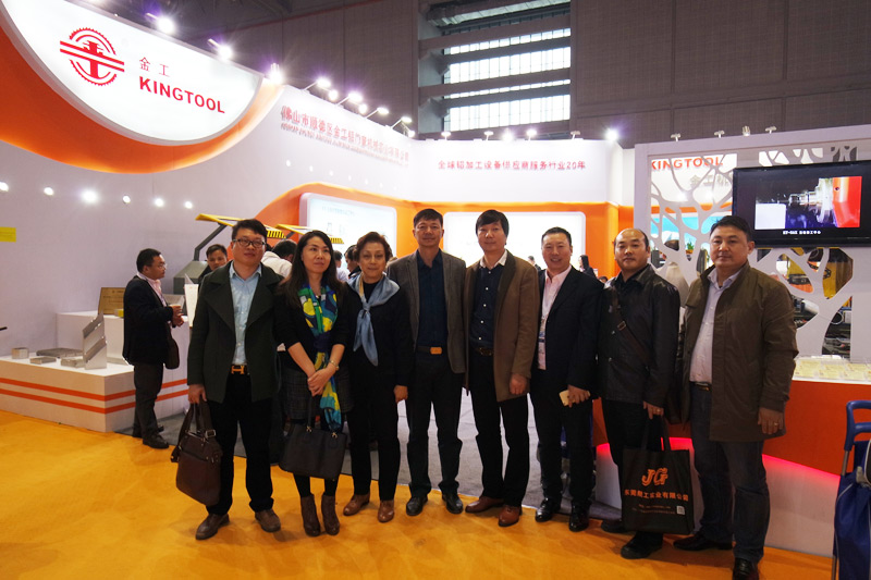 协会参观人员与金工铝门窗机械实业有限公司领导在展厅进行交流
