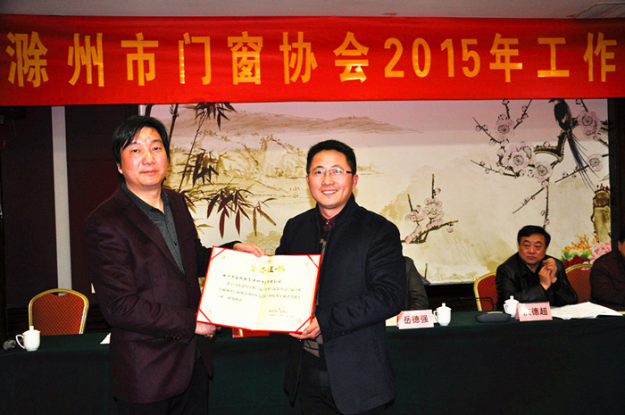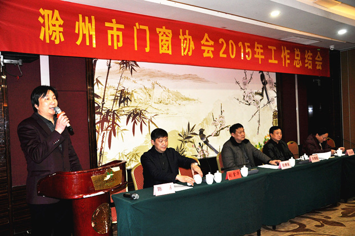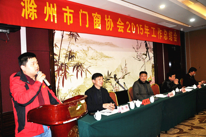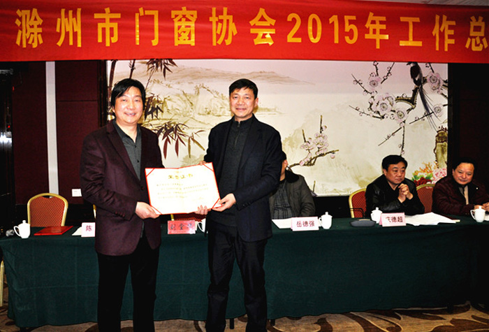 会议由市门窗协会常务副会长陈翔主持。市门窗协会会长、滁州金鹏建设集团总经理孙元祥向与会者着重汇报了2015年协会努力加强了内管、沟通、协管、引导、共赢、服务、拓展、节能、爱心、组织等十个平台建设和2016年协会将创新发展思路、加强组织建设、强化服务功能、推行国家新标准、争取政府支持等工作设想;协会理事单位浙江中财型材有限责任公司汪斌副处长代表会员企业发了言;安徽省门窗幕墙协秘书长秦福仓代表兄弟商会(协会)讲了话;最后,市工商联(总商会)党组书记庆德超在会上作了重要讲话,他说:“在2015年中,市门窗协会开展了大量务实、丰富多彩的活动,各项工作远远走在了市行业协会的前面。希望市门窗协会今后的工作能做到爱心、信心、用心、创新八个字:爱心是企业家致富不忘回馈社会,继续帮助需要帮助的人,献爱心是体现企业家的觉悟;信心是从事门窗行业人士都很年轻而充满活力,要在困境中树立信心、寻找机遇,企业就能不断发展;用心是至今滁州市还没有门窗知名品牌,企业要用心将内部管理做到极致,企业才能做大做强做出品牌;创新是协会要帮助企业在技术上、产品上、服务上创新,通过创新驱动发展”。会上,会长对获得优良工程的企业还颁发了“优良工程荣誉证书”。