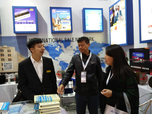 展会上协会与济南德佳机器有限公司总经理邓小欧交流