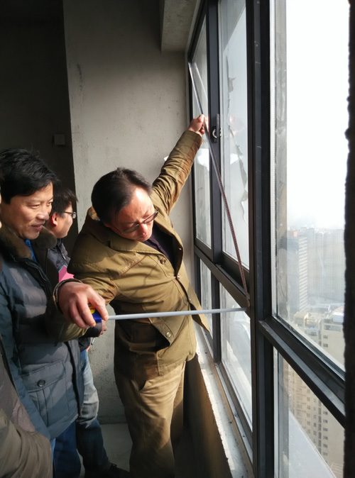 为了监管提高会员门窗工程质量,协会邀请了市规建委质监站、工程造价管理站等部门领导与协会门窗生产企业负责人及质量技术考评小组人员一行二十多人,于12月22日抽检了全椒幼儿园环宇断桥铝5+9A+5推拉窗工程(由利成承建)、全椒华府骏苑防火防盗门工程(由扬子门业承建)、来安汊河碧桂园海棠苑中财彩塑88系列6+12A+6蓝玻门窗工程(由金锐达公司承建)、来安星河城锌钢阳台护栏、百叶窗、扶手工程(由博昊门业承建)、滁州玲珑湾别墅木质全屋定制工程(由合派门业承建)、天逸华府杏园18#楼金鹏彩塑88系列5+9A+5推拉窗工程(由久佳门窗承建)、滁州苏宁广场公寓楼强峰断桥铝90系列5+12A+5推拉窗和55系列5+12A+5平开窗工程(由金鹏门窗承建)。