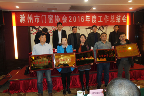 会议由市门窗协会常务副会长陈翔主持。市门窗协会会长、滁州市金鹏建设集团总经理孙元祥向与会者着重从十二个方面汇报了2016年滁州市门窗幕墙协会努力作为,坚持创新驱动,主动适应经济新常态,围绕行业发展不断增强各项功能,加快推进了企业转型升级,并充分发挥了“行业自律、提供服务、反映诉求、规范行为”等职能和桥梁纽带作用,规划了2017年协会要做好行业资格登记工作,推进行业诚信自律体系建设;要帮助企业技术创新调整结构,推进供给侧结构性改革;要加强自身组织建设,使协会能承担起新的职能;要强化服务功能,为行业和企业提供有效服务;要用心当好政府助手,充分发挥协会桥梁纽带作用等五项主要工作,要把滁州市门窗幕墙协会办成一个思路创新、运作有序、公信力高、符合新时期要求的协会。接着,协会秘书长宣读了“关于表彰2016年度优良工程的决定”和“关于表彰优秀会员企业和诚信会员企业的决定”,主席台领导分别为获奖企业颁发了奖牌和奖励证书。