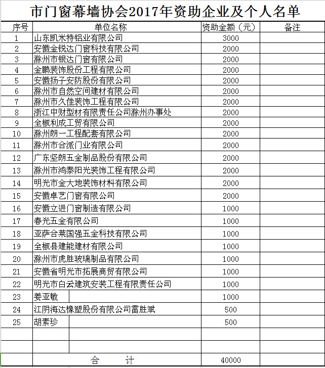 协会积极参与爱心资助公益活动 市门窗幕墙协会会员企业及个人已连续十年资助贫困学生和贫困家庭,今年继续传承协会优良美德积极参与爱心资助公益活动。