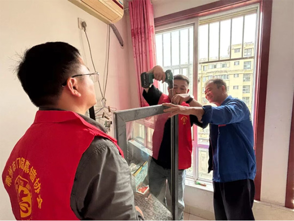 随后,党支部副书记邱伟带领党员、积极分子共同学习《习近平谈治国理政》第五卷关于加快构建新发展新格局,着力推动高质量发展部分章节,感悟思想伟力、汲取真理力量。 会议结束后,在清流街道党工委和创业社区的带领下,协会党支部来到创业北苑小区,开展“党员义务进社区,志愿服务暖人心”义务活动。 为社区居民提供免费的上门维修服务,并宣传《门窗质量鉴别、使用、维护的基本常识》以及《绿色建筑与节能门窗的重要性》,加强居民们对绿色节能门窗的了解,为居民们排忧解难。