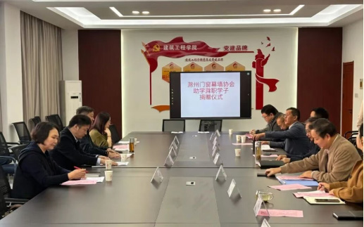 爱心助学,筑梦未来 | 滁州市门窗幕墙协会赴滁州职业技术学院开展捐资助学活动 为深入学习贯彻党的二十大精神,积极营造全社会关心支持教育良好氛围, 近日,滁州市门窗幕墙协会带着对教育事业的深切关怀和对莘莘学子的殷切期望,走进滁州职业技术学院建筑工程学院,向贫困学生捐赠爱心助学金一万元,用实际行动助力学子圆梦青春。 捐赠仪式在滁州职业技术学院会议室举行,会议由建筑工程学院党总支书记刘文元主持。