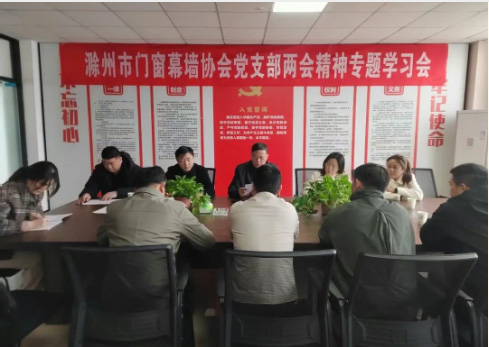 学思想 强党性 促发展|滁州市门窗幕墙协会党支部召开两会精神专题学习会 为深入贯彻全国两会精神,进一步加强支部党员的思想政治建设,近日,滁州市门窗幕墙协会党支部顺利召开了专题学习会,会议围绕理论学习、民主评议等多项议程展开。支部党员、积极分子共计十余人参会,会议由党支部书记主持。