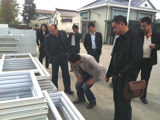 协会参观人员察看宏夏公司生产的半成品塑钢门窗