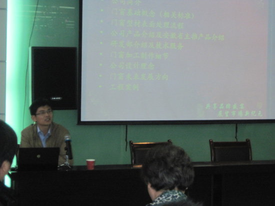 为了提高培训效果,培训班采取了讲课和提问相结合的互动形式。罗普斯金铝业技术研发部蔡强经理先着重讲解了关于铝合金门窗国家相关标准中对铝材壁厚、门窗性能(抗风压性、水密性、气密性、保温性等)、门窗传热系数K值的要求和铝合金推拉窗雨水渗漏原因及解决办法等,每当蔡老师讲到比较突出的关键性问题时,要求学员们提出各自意见,交流解决问题的方法,加深对问题的理解。蔡老师还通报了我国门窗未来主要以低碳环保为前提的发展方向,产品开发和技术创新将成为门窗企业的核心竞争力。接着广成铝业生产部陈杨明厂长、技术部朱宝龙工程师分别讲解了铝型材的主要生产工艺和铝门窗制作工艺、技术要求和注意事项,并现场询问了生产安装人员在使用广成铝材过程中存在的问题和合理化建议,不仅使培训人员学到了知识,又使培训班成为门窗型材生产厂家和门窗生产企业相互沟通的平台,有利于今后更好的合作和产品质量的提高。