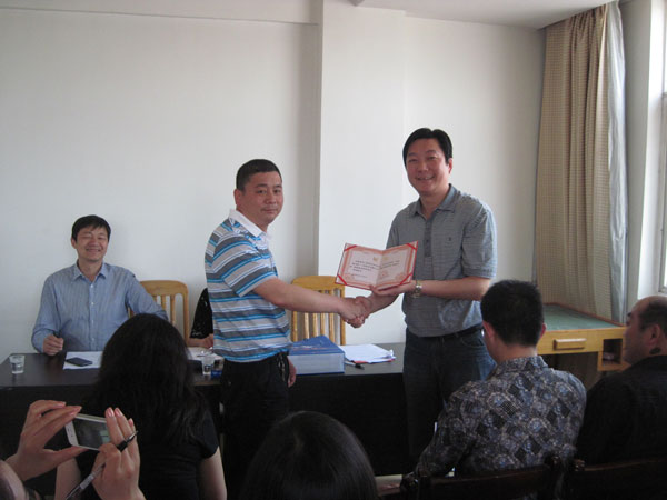 互访中协会常务副会长孙元祥向朗一工程配套有限公司代表颁发理事证书 2012-5-7 17:06:05