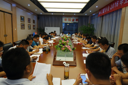 滁州市门窗幕墙协会召开2016年上半年工作总结会 7月19日下午,市门窗协会在金鹏建设集团会议室召开了2016年上半年工作总结暨第三次工作例会,全体会员企业负责人和企业代表40多人参加了会议。