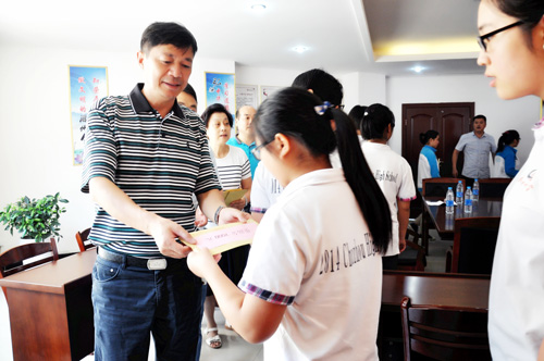 市工商联查镜波主席在“滁州市关爱贫困学生资助仪式”上作重要讲话 整个活动充满了关爱和温情,市工商联、滁州中学领导和市门窗协会捐助企业代表与受助学生合影留念。