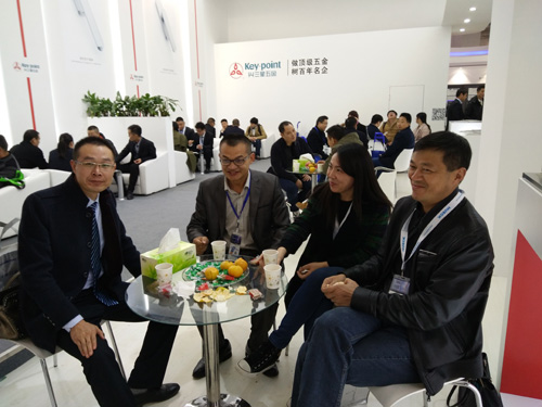 展会上协会与济南德佳机器有限公司总经理邓小欧交流