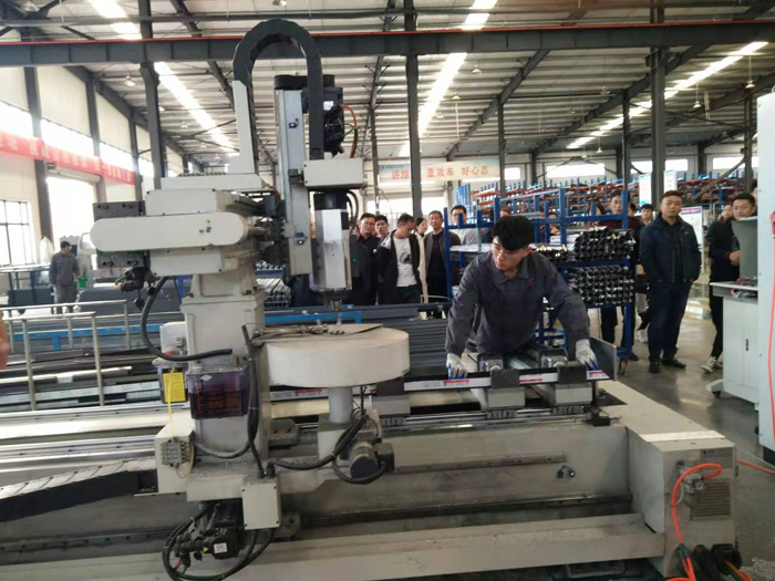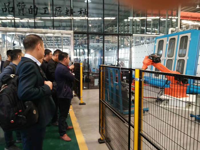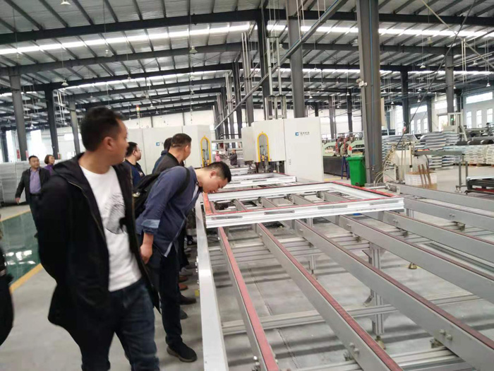 金鹏节能科技有限公司是金鹏控股集团旗下的新型企业,年生产门窗幕墙面积达120多万平方米,是滁州市门窗幕墙行业领头羊,也是安徽省门窗幕墙生产领军企业。协会一行在金鹏节能科技有限公司行政部部长孙祺陪同下先后参观了公司展厅、铝合金门窗生产流水线、塑钢门窗和玻璃自动化生产线、私人定制生产区、耐火门窗和百叶窗生产线及仓储、成品车间等。在参观中公司孙祺部长详细介绍了金鹏节能科技有限公司门窗幕墙生产及管理情况,带领大家认真观看了铝合金、塑钢、耐火门窗生产的每道工序和生产工艺,并特别介绍了该公司运用微高ERP软件建立了数字化管理平台,有效提高了生产效率和管理水平。大家为金鹏公司近几年的快速发展和生产设备自动化程度之高而惊叹,也被管理严密、井然有序的生产场面所感染,大家深深认识到自身的企业在发展理念和生产管理上与金鹏公司还存在较大的差距。