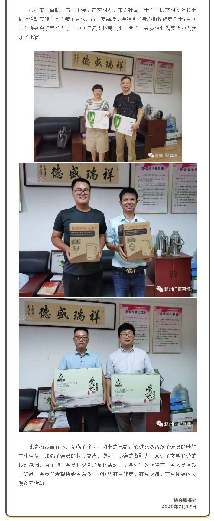 市门窗幕墙协会组织2020年夏季扑克掼蛋比赛