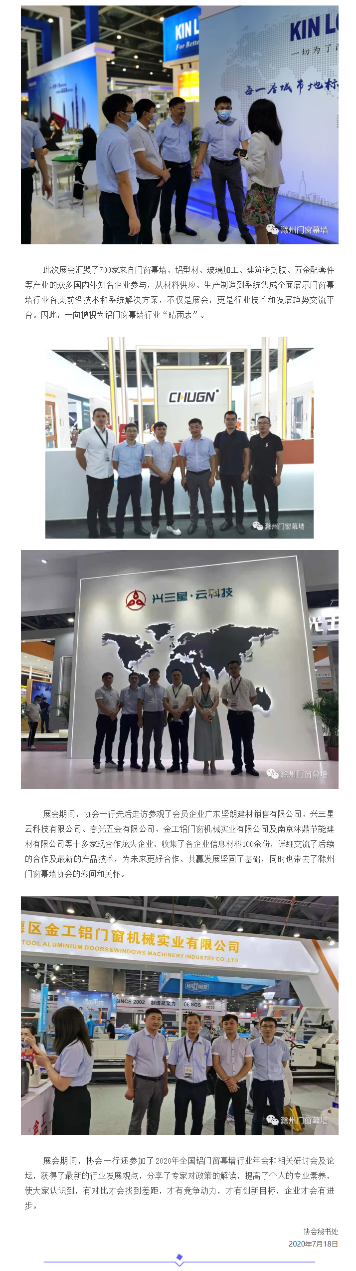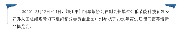 滁州市门窗幕墙协会组织参观 2020年第26届铝门窗幕墙新产品博览会