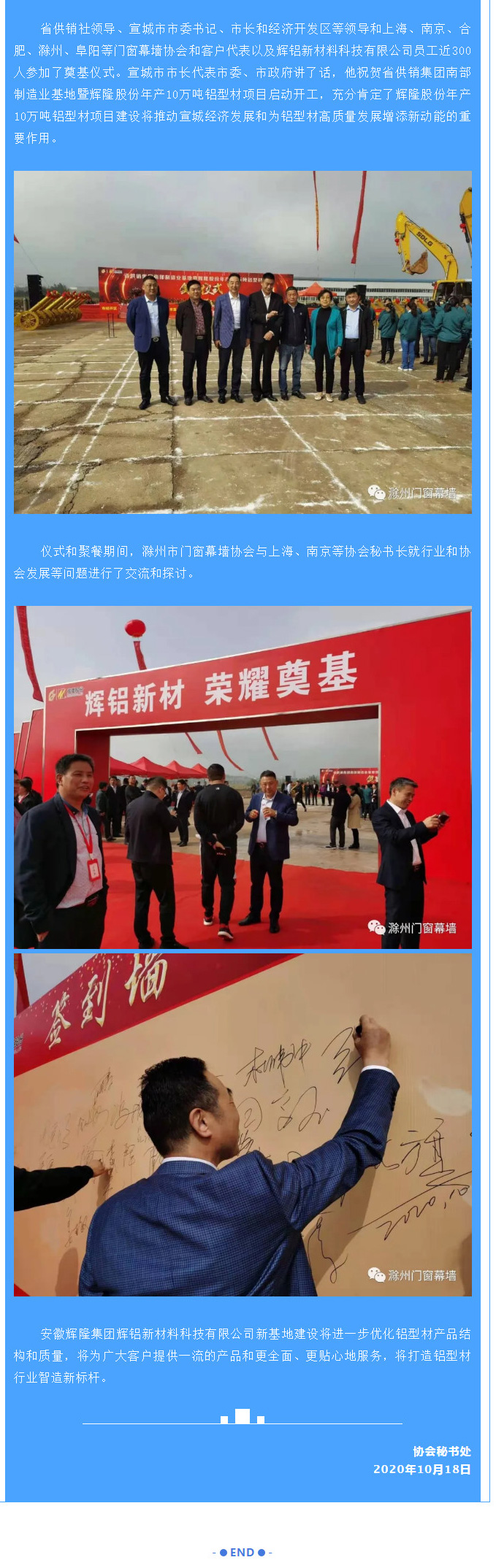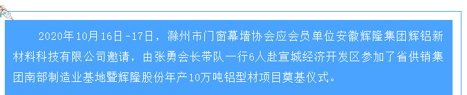 滁州市门窗幕墙协会应邀参加省供销集团南部制造业基地 暨辉隆股份年产10万吨铝型材项目奠基仪式