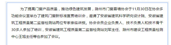滁州市门窗幕墙协会 举办建筑门窗新标准宣贯培训会