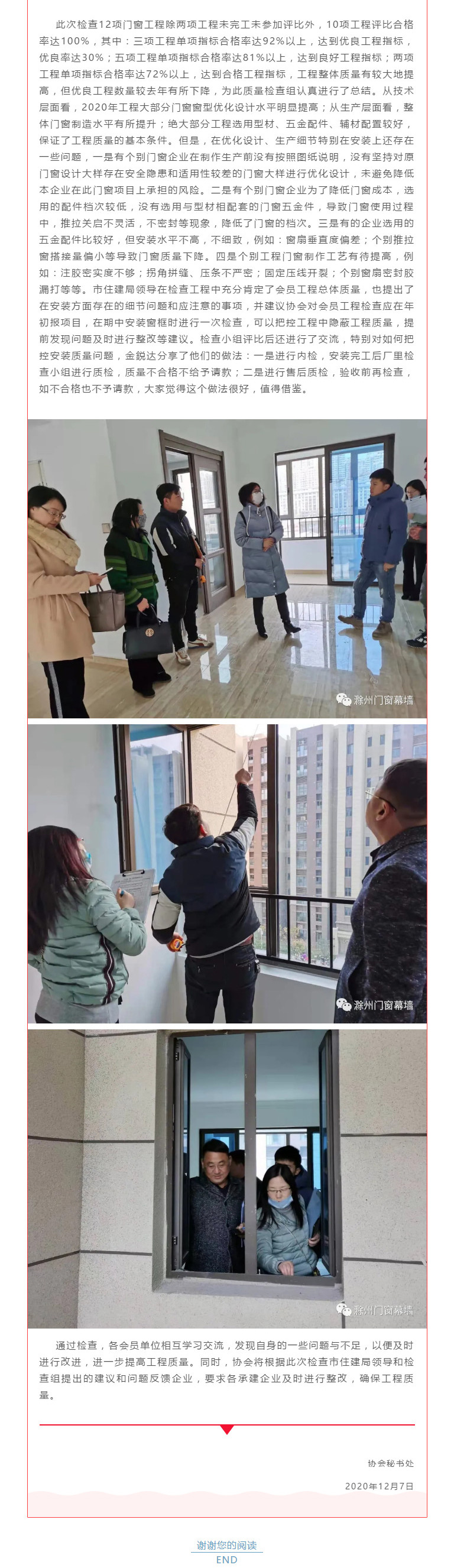 滁州市门窗幕墙协会 组织检查2020年会员门窗工程质量