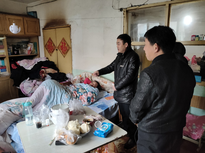 元月26日下午,由协会党支部书记孙务江同志带领部分党员和积极分子在白云社区党委杜敏书记陪同下冒着小雨,登门看望慰问了李文建、李琳等5户贫困家庭,给他们送去了慰问金及米、油等春节用品,大家每到一户都问寒问暖,不仅送去了社会对他们的关爱也送去了党员们浓浓的新春祝福,让他们在困境中真切感受到党和政府及爱心企业家对他们的关怀和帮助,增添了他们对生活的信心和希望。