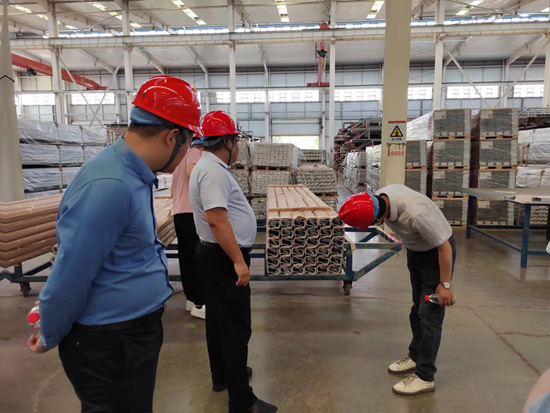 在海螺嵩基新材料有限公司何西副总经理的陪同下,协会一行先后参观了年产10万吨高端铝合金型材的挤出、氧化和喷涂全自动生产线,为生产高品质的工业铝型材和建筑铝型材提供了有力的硬件保障。参观结束后企业负责人与嵩基公司的技术人员进行了广泛深入的技术交流和座谈。